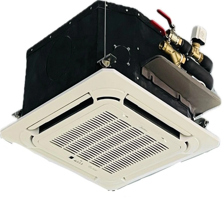 Chilled Water Type Cassette AC units are ceiling-mounted systems that use chilled water for efficient cooling and even air distribution. They distribute air evenly across the room, ensuring consistent temperature control. Compact and aesthetically pleasing, these units are ideal for commercial and residential applications.
