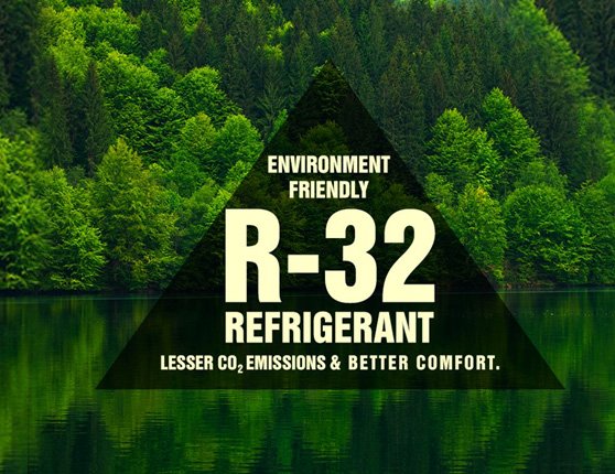 Daikin supports sustainability with R-32 refrigerants and free patents to combat global warming and protect the ozone layer.